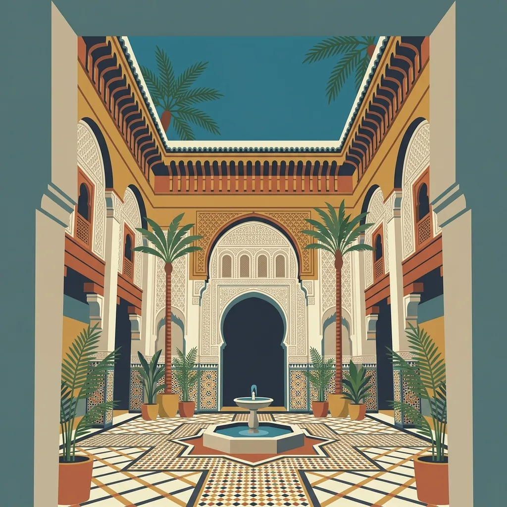 This produced a specific urban grammar. Windows facing neighbours' windows were forbidden or strictly regulated. Dead-end lanes existed so that strangers could not pass through a residential zone, even accidentally. The riad — the traditional Moroccan house built around an interior courtyard garden — presented a completely blank face to the street. No windows at ground level. No indication of what lay within. The beauty of the house was inside, entirely invisible from outside, because the outside was, by religious reasoning, not where beauty was meant to be seen.2